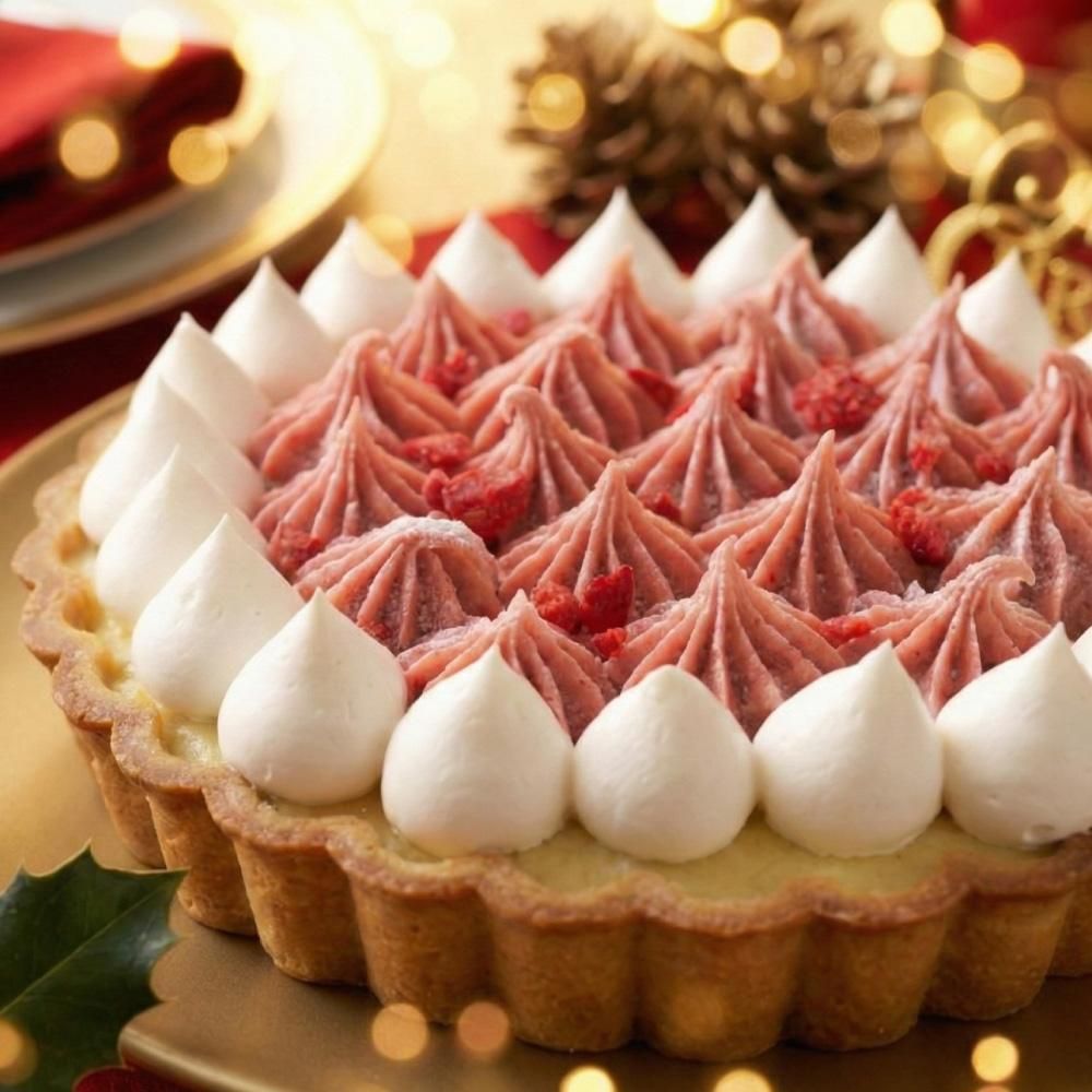 ホワイトチョコでコーティングしたサクサク食感のクッキータルトの上には、